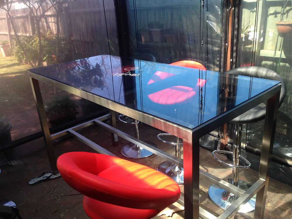 Table tops may be tempered glass or even have a bevel around the perimeter, they are extremely resilient with very little maintenance needed. We can site measure , manufacture , deliver and install . Call us today to discuss your project needs.